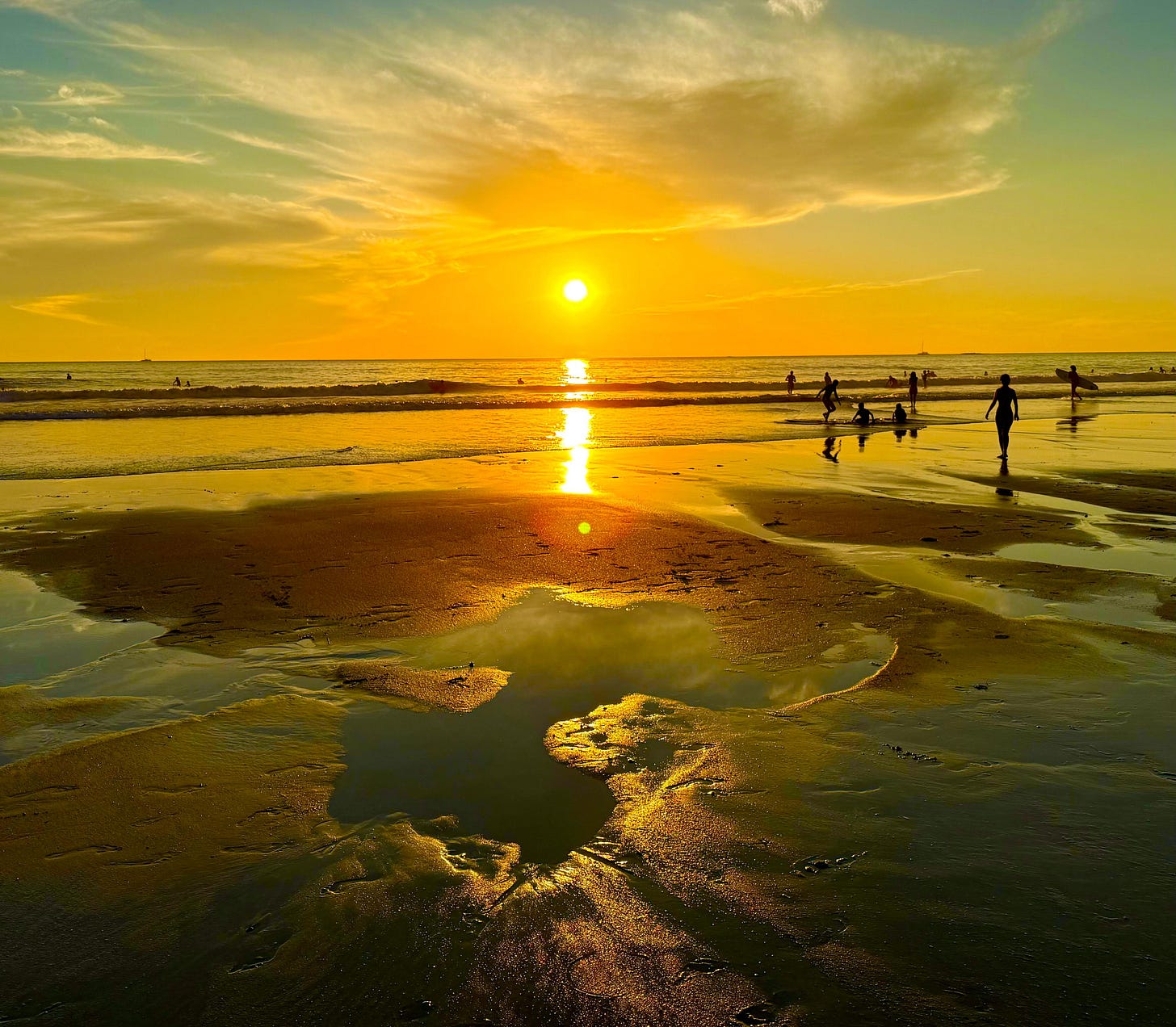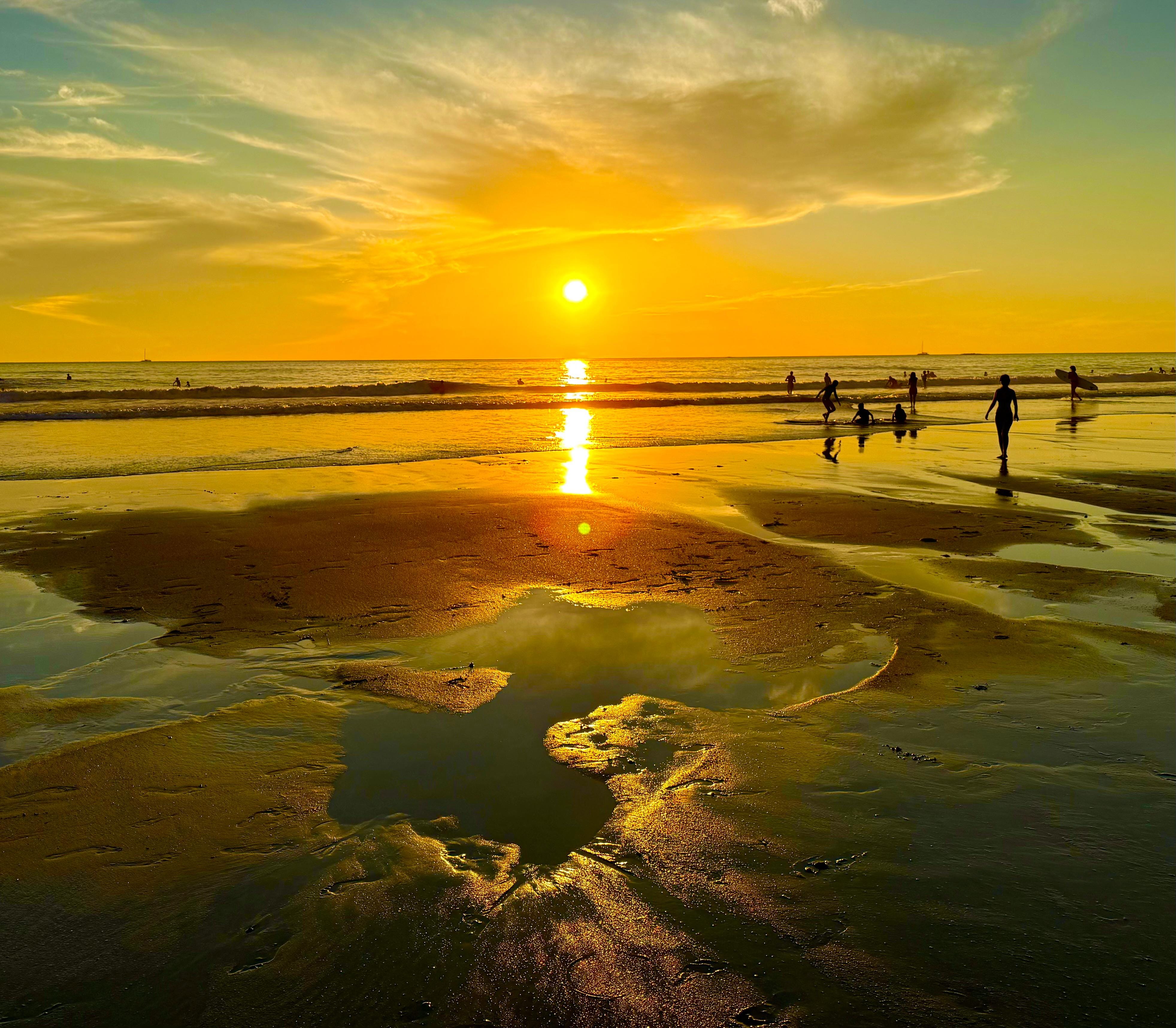 On the Pacific coast of Costa Rica, sunsets are less of a suggestion and more of an obligation. They arrive every evening like a standing appointment everyone agrees to keep. Friends, families, couples, surfers, and solo wanderers drift toward the beach as the light softens, as if pulled by something older than routine. The sun sinks slowly into the ocean, and for a brief window of time, nothing else seems to matter. Conversations pause. Phones come out, then often go back into pockets. It’s understood that this is something you show up for.